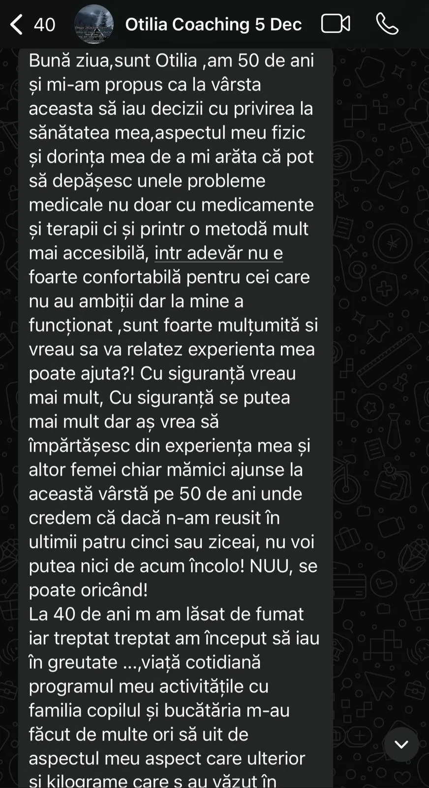 Testimonialele și studiile de caz prezentate reflectă experiențe reale, însă nu garantează rezultate tipice. Progresul este influențat de disciplină, consecvență, aplicarea corectă și condițiile individuale.